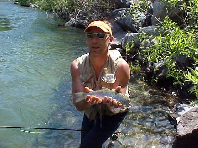 Here’s Shasta and Todd fishing out of the raft. Todd caught a nice one and Shasta helped release it! I want to congradulate Todd and wish him success in his marriage, he’s getting married on June 8th!~