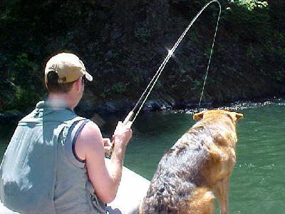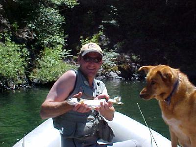 Shasta looks impressed, what a great day we had catching trout on a sunny day!