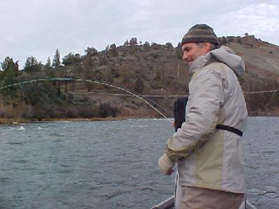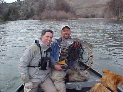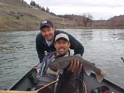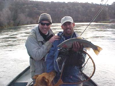 His partner, John Walsh also had a fine day out on the Klamath River. Especially when he hooked into this nice 5 lber right off the bat! He’s gonna start his own show called, “America’s Most Wanted Trout!” With the name, “JOHN WALSH”, this guy must hear a lot of jokes like that. In the past I’ve guided Bryan Adams, Joe Walsh, even George Bush. Fortunately the last name wasn’t the real guy either.