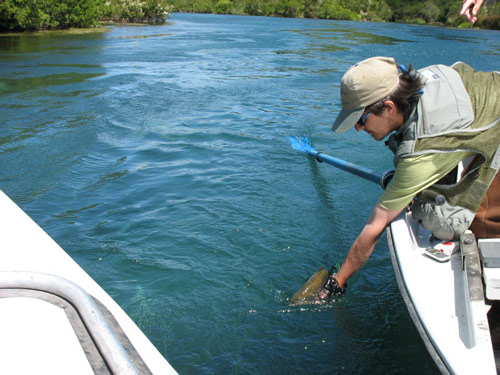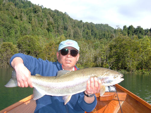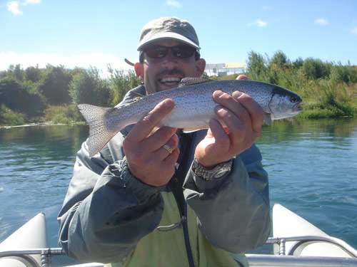 The day we had on the Lower Petrohue was great, but the fishing was not as good as the Rio Maullin in Previous days. This river here has no dams just like the Rio Maullin, but the differnce was, the hot weather was melting snow on Volcane Osorno and the banks of the river that usually produce larger trout was running fast, thus why I encourage all to come here in mid February to March, and fish the lower flows that are never controlled.