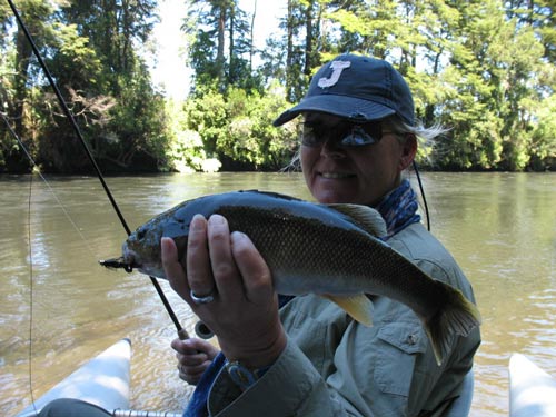 The next day our adventures on the rivers commenced. We put in on the Upper Maullin, just outside of Puerto Varas. David was a finatic fly fishermen, Maureen just liked to come along and enjoy the views, possible read her book, and photograph David’s catches. Little did she know this was to be the start of a life long partnership of fly fishing with her new husband of only three years. The book was never taken out the entire week, Sizzlers!
