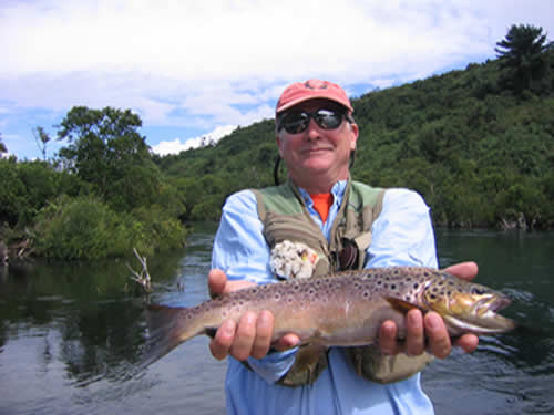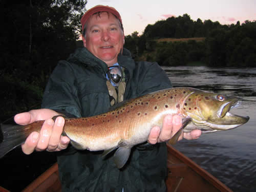 Meanwhile, father Henry was on the Rio Maullin, with Nico guiding him and he had other ideas. He was hooking into browns and had a lifetime dream of being Sizzler of the Week! Nico the night before had tied up some of his cheater streamers and trout can’t resist them cause they looked so much like small fry atlantic salmon.