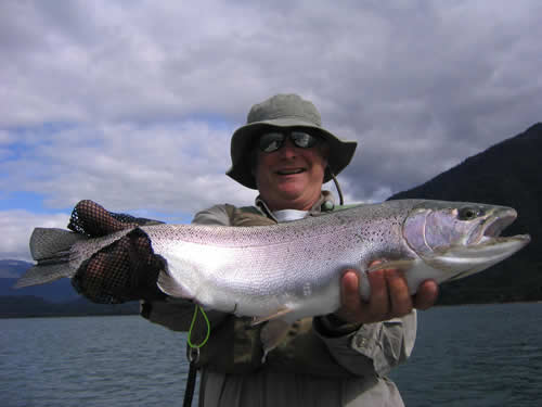 The Upper Futaleufu has got to be one of the most beautiful places on earth. Certainly among the top rivers to fly fish in the world with its numerous species of trout which include rainbows, browns & steelhead. On this river you have views everywhere you look, and then an inner-peace sets in that replenishes the soul. This is a place one should visit in one’s lifetime if not often, to witness how great life on earth can really be. So the stage was set, Henry and daughter Lucia Hossfeld were on their way. We just finished our perfect week of fly fishing with Clay Hash and Blake Larsen. Nico, Poncho and I headed for Chaiten to take the Trout Mobile and the two boats back to Puerto Varas via the ship to pick up the Hossfelds. I could feel it in the air that the fishing was really starting to turn on here in Patagonia, since unusual high waters from December and January had finally left us on their journey to the surrounding oceans.