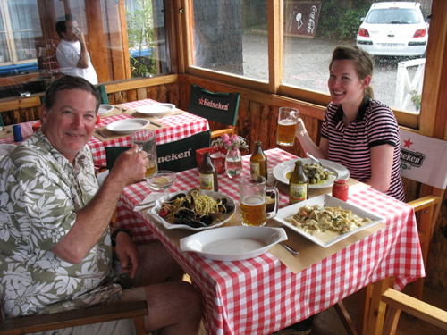I picked up Henry and Lucia at the airport, and took them for the usual at Alassandro’s in Puerto Varas. I know when folks finally reach us here in Chile after a long flight, they’re ready for some great food and a drink to whet their whistle. Alassandro’s is just the place, and Henry and Lucia agreed!