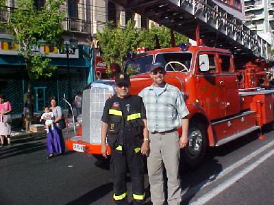 One of the things I love about Chile is, I asked these guards at the bottom of this tall building to take me to the roof for a picture for my web site and 5 minutes later I was on the roof looking down at the center plaza. This and the fire truck thing for the kids would not go over to well in United States due to potential law suits from the sue happy society we live in. Chile and South America is like the US in 1940, still virgin to that stuff, people just let you be what you want to be. NO JUDGE WAUPNER!!!