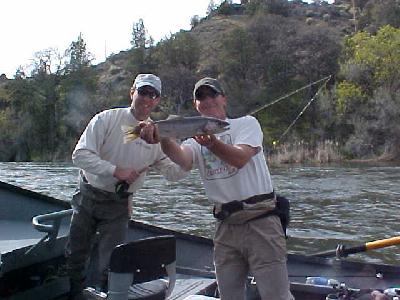Last week the rains made rivers swell, things looked gloomy for the group coming up from Teichert Inc. but the weather calmmed down a little and we decided to take a stab on the Klamath River. The flows were 2600 CFS and maybe with all these recent storms some Spring Run Steelies might of made there way into the Klamath system. Mike Hibbard my guide, who is also an expert on the Trinity joined me on this adventure. I like Mike he has a great attitude for guiding and said, “Jack do you remember when we guided Greg Livingood last December in those 45 mile an hour winds and still pulled off a spectacular day!!” So the stage was set, it was like a Rocky movie with Burgess Meredith in our faces saying, “Can you catch the chicken Rocky?!” The water was high but that didn’t stop Mike and I on this trip!