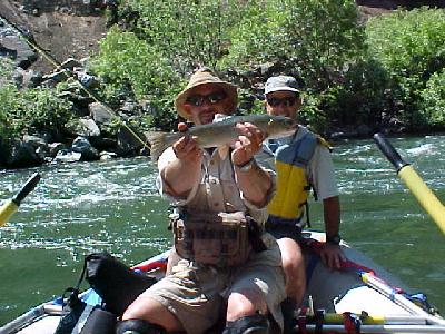 Larry had a banner day catching fish in the raft as well as wading off gravel bars we stop frequently at. Larry is my “Sizzler of the Week Award Winner!” The trout is awesome! jt