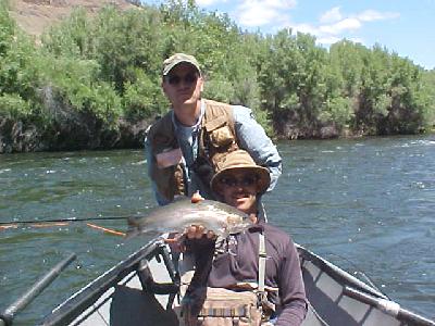 Here’s the catch! nice one Grant hope to see you up in the Fall!!*****WELL THAT’S ANOTHER GREAT WEEK OF GUIDING, NEXT WEEK THE STONE FLIES GET MORE THICK! CALL US TO BOOK THE KLAMATH OR EVEN CHILE FOR 2004, UNTIL THEN JACK TROUT ENJOY YOUR 4TH OF JULY!