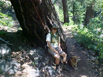 in the North State. Ken Maxwell and Shasta enjoyed this shade under this ancient douglas fir tree. Located on the the south trail below lower falls on the upper mccloud river, many old growth trees still exist in their natural state.