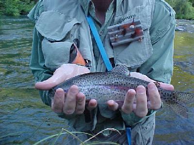 This is the Pit river located over near Burney, California. This river is a haven for trout that live in it’s waters, with it’s slippery rocks and boggs that allow cover and protection for resident rainbows. In addition, it’s tea like color is good for camouflaging trout from it’s predators. On this day I took out Frank Elridge and we had a ball catching these trout with pepper marks on their belly!