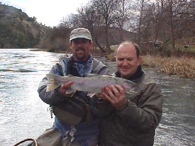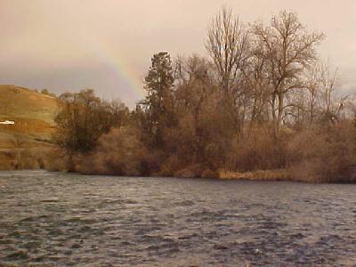 Back on the Klamath the rainbow was out and the fishing was hot! I used my fancy Siskiyou County polarized filter on my camera to really expose the rainbow and make it apear in this picture. (I placed my Maui Jim Sunglasses over the lens)jt