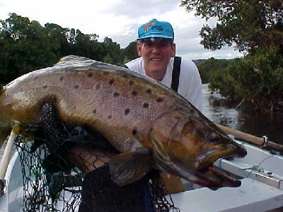 Chris then hooked into this total lunker that took him for a ride Chilean style!! She bobbed, she weaved down stream as Chris¥s reel screamed out the song, living the vida loca! Later I noticed she had lips like Monica Lewinski!!