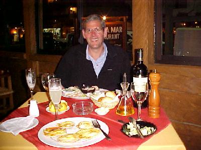Heading backwards in the direction of our adventure, Chris enjoyed his night out in Pucon at this wonderful seafood restaurant that included albalone, crab, mussles and clams, as well as congrio (white bass). We ate our food and enjoyed a fine bottle of Errazuriz Max Reserve, Cab 2000. Oh Yea, did I mention Pisco Sours too??**** THERE YOU GO! JOIN AS WE CONTINUE OUR ADVENTURE BACKWARDS IN TIME, IN THE PUCON AREA OF CHILE!!***** TAKE CARE SIZZLERS, JACK TROUT