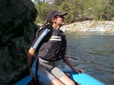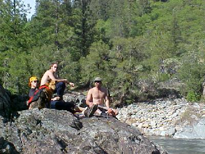 We started up at Sims and rafted halfway down to just above Gibson, and saw this huge rock and decided to have lunch with my friends, Tim, his brother Sean and Lauren (boat babe). The views were awesome, and from above I could see trout feeding on nymphs, flashing and holding in a swirling eddy, faced backwards against the current. I thought to myself, what a great season this is shaping up to be. The water was clear, the level was perfect, and the opener was only a week away!! (Did you see Shasta in her doggy life preserver!!)