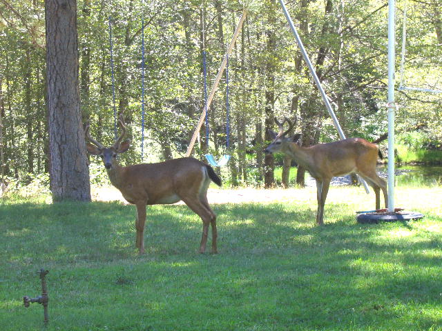 Bucks out eating in a yard near Douglas City, on the Trinity River.