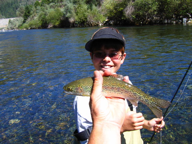 Mike Hibbard and I had a great time guiding these three characters for 5 days this past week. Our two days on the Lower Sac were great! Clay hooked into this nice rainbow that took him for a ride.