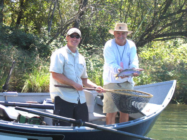 When Keith and Brice and his son Shane arrived the weather couldn’t have been better. They had scheduled their trip for 3 days and we took them on the Trinity, Lower Sac (Mike Hibbard) Upper Sac and the Mccloud Rivers. Shane hooked a 4lb Kamloop on the Upper Sac!(camera was out of batteries, bummer!) Keith caught 15 with Mike on the Lower Sac and Shane caught 25. Keith had a trout on the Trinity jump up and hit him in the chest, I might add I had another fish hit another customer this week in the arm in the same area below Lewiston Dam?? Trout are getting pissed off about us catching them??!!??