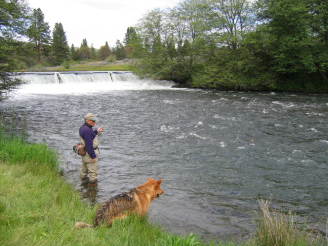Shasta and Tom Shaddox on Hat Creek. Shasta’s two favorite rivers in her old age were Hat Creek and the Trinity Rivers.
