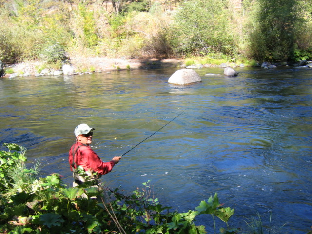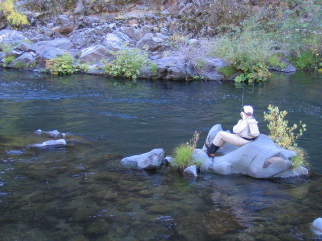 But it was John Siegler of Seattle that proved to be a big winner when he dapped his nymph in this tail-out at the bottom of a slow run near the edge of that rock. Not more than 3 feet away loomed a lunker trout, waiting for his meal-on-reels!