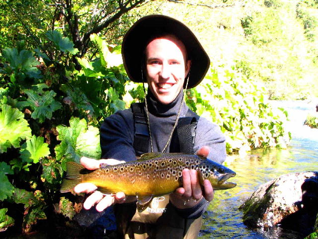 John was taken downstream in an instant. He reeled the trout within viewing distance and we all got chubbies