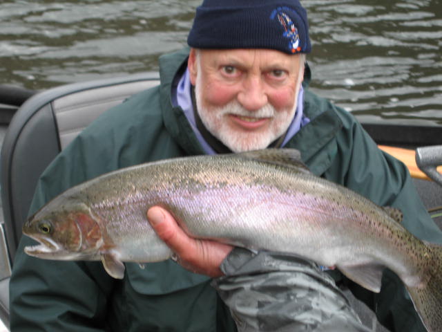 Ok, Ok, Pop’s son Jon, is so happy to be on the water with Pops, as he ties into a nice steelhead.
