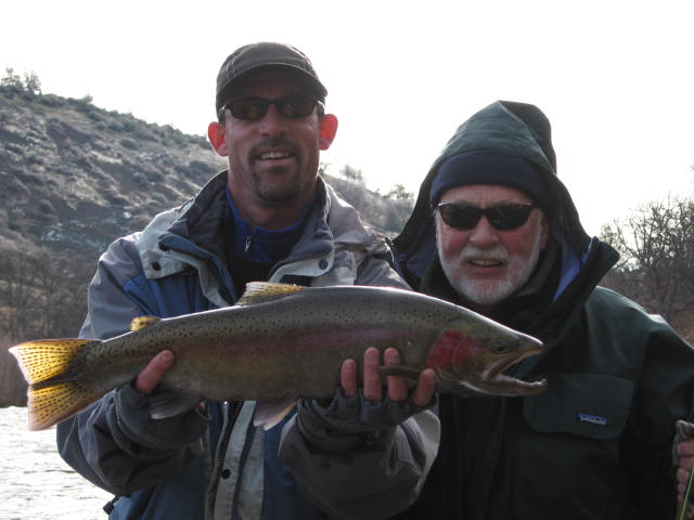 With that I conclude this short story. I dunked my camera again so I had 10 more big fish photos to show you from trips this past week. I HAVE THIS FRIDAY AND SATURDAY OPEN NOW AFTER A CANCELLATION, I HAVE TWO GUIDES AVAILABLE FOR THIS WEEKEND ALSO. THE FISHING IS AWESOME GET YOUR FANNY UP HERE!!! FLY FISHING WILL REMAIN ACTIVE INTO FEBRUARY. THIS PAST STORM HAS BROUGHT IN THE SILVER SALMON (COHOS) THE RIVER HAS BEEN PERFECT LEVEL AVERAGING ABOUT 1800 C.F.S. THIS LEVEL IS PERFECT FOR SPAWNING OF THE SILVERS. THE STEELHEAD ARE RIGHT ON THEM AS THEIR REDS ARE BEING MADE AS WE SPEAK. IRONGATE HATCHERY REPORTS TO ME THAT THEY HAVE RECEIVED 1280 ADULT SILVERS SO FAR!!! LIFE IS GOOD ON THE KLAMATH RIGHT NOW, LETS KEEP IT THAT WAY!