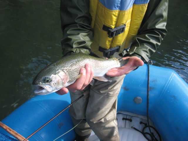 Catching trout out of my raft is a hoot!