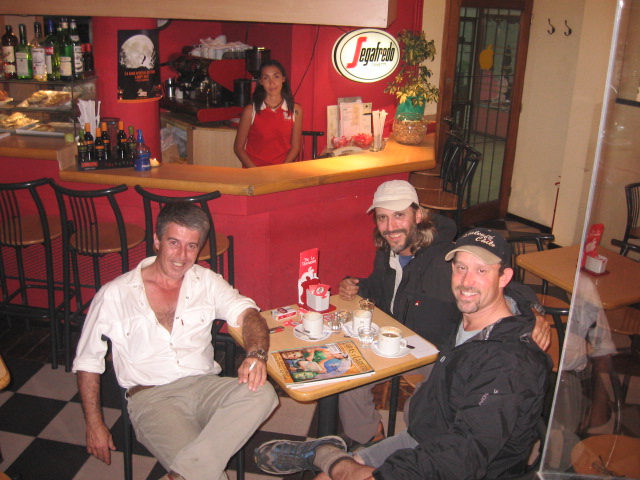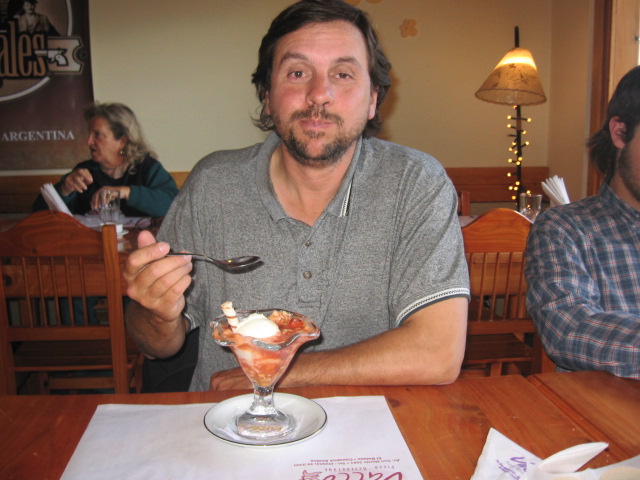 My good friends in Bariloche Argentina, Geraldo and Martin as we drank some coffee and talked about politics in the world. I felt a little sick that night, I caught a two day bug. I think it was from using the computers in the internet cafes. I assure you it wasn’t the food! Many days on the road could be a factor– No hooters for sure– I quit that!