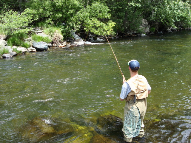 Nick came along to learn fly fishing and see one of California’s most beautiful rivers and drink a few brews. First thing I taught Nick was to hold the rod in the corked section. It was his first time fly fishing and Nick was having a good time and enjoying the great views.