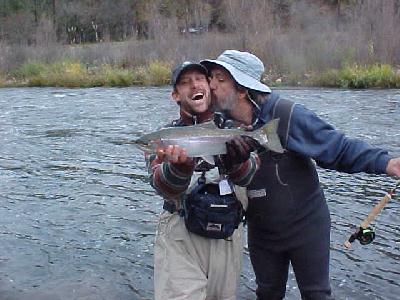 I really don’t want to start any rumors out there, but I thought you’d get a kick out this Pic. There goes my political career, “Layne it’s just a Steelhead don’t get so excited”. I’m sure glad all my customers don’t get this excited, and by the way that beard was gross!!!! Next time he can take his own fish off. I know it’s Happy Camp but I think your getting a little carried away with moment!