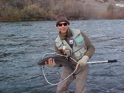 Heres Craig with a nice Klamath Rainbow Trout. It’s a male I can tell because of it’s lower hook jaw and pointed hydro dynamic design! Sounds like a car commercial, Craig thought he was being pulled by a medium size S.U.V. when he hooked into this lovely scaled creature. I’m still catching a lot of these size trout and steelhead into January.