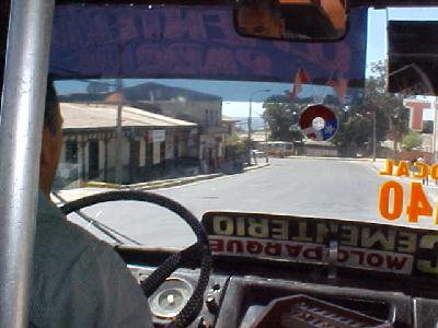 I had my coffee and decided to head out for Valpraiso, I could rent a car here no problem, but going by bus up and down the coast cost about .50cents and I’m telling you it’s an adveture! The drivers must get paid for how many routes they make in a day, cause they drive like it, and the winding narrow streets, match with the “Streets of San Francisco” make this journey far more better than any roller coaster ride. It’s halarious, the drivers are always honking at each other, getting past each other by the narrowest of margins. Look near the window, what do you see Sizzlers, an American flag and a Chilean flag side by side! Thats right, there our allies and as long as we don’t take it for granted
