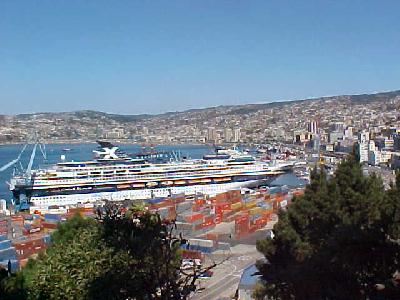 Valpraiso is a main port harbor city for all of Chile, containers as well as goods for the entire country are shipped into here.