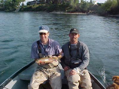 Out this past week with two brothers from Philadelphia, fly fishing the Lower Sac. Check out this nice lunky that Alan caught and released unharmed. His brother Rich caught a 5lber but we couldn’t get the picture in time, the monster busted the hook in 1/2!(GUIDE EXCUSE OF COURSE) I had fun with these two look alikes, they were twins. I couldn’t determine who harassed me more Alan or Rich, These guys were two characters from another planet ( trust me on that one!) Way to go guys, Your my “SIZZLER OF THE WEEK!” award winners. I wouldn’t want to be old class mates with these guys and have them do a roast on me at a reunion party, it would be brutal.