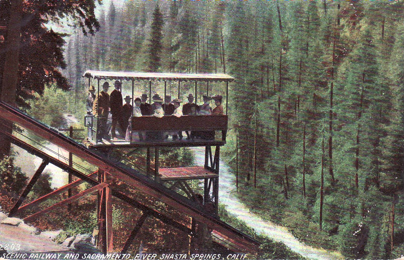 Now it’s time to step back in time and revisit the Shasta Springs Resort around 1908, they had this incredible lift up from the rail station to the resort located up on top of the hill.