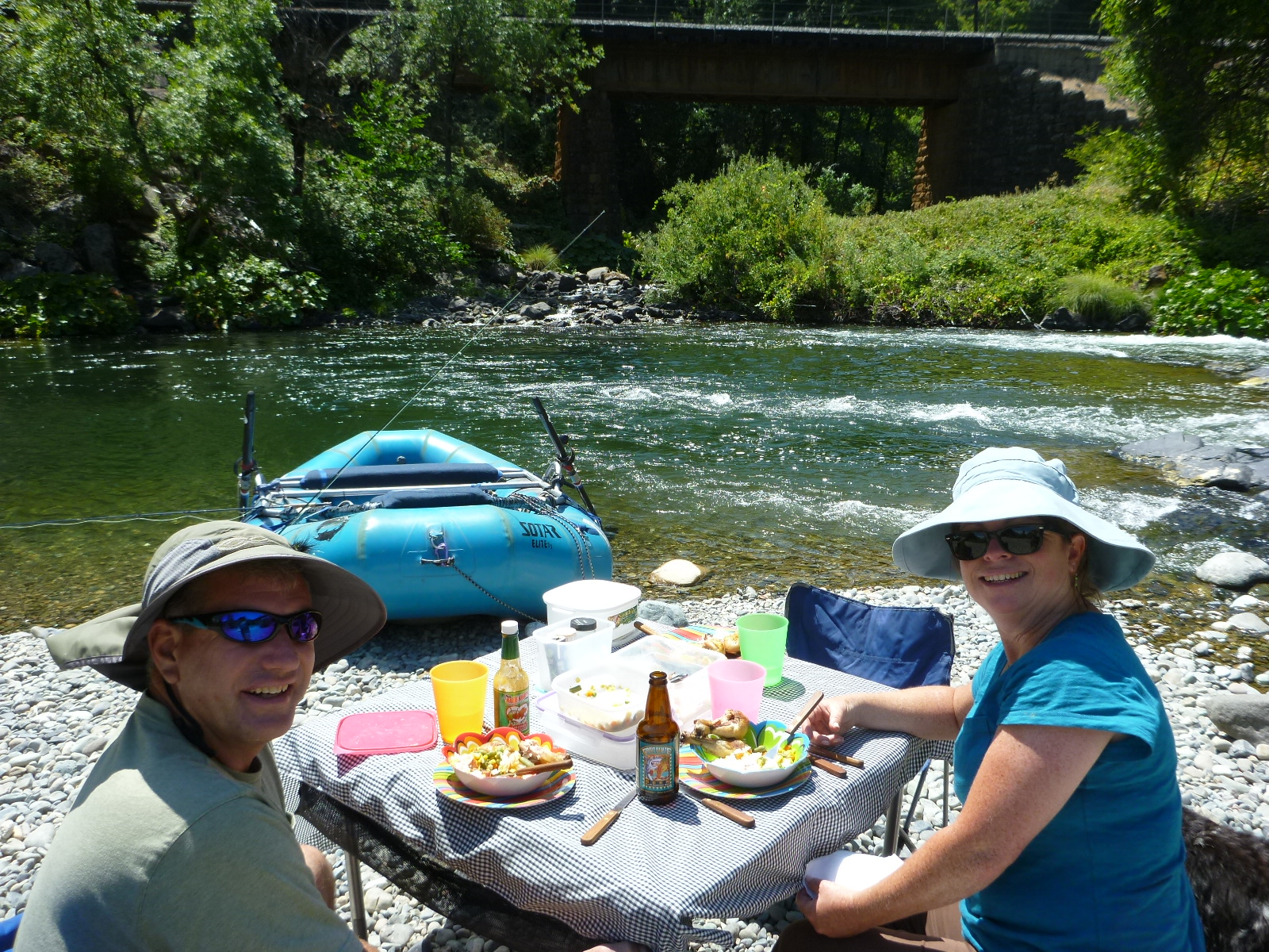 George Paris and his son Ethan came up to see me and float the Upper Sac down to Shasta Lake for a second year. In this family when dad wants a bite of their banana split sundae, the kids often say “Dad, don’t take a George Bite Please!”