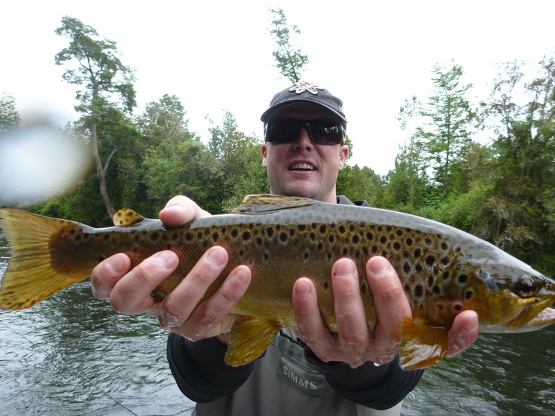 Shane had to fly fish in some pretty tough weather as this spring in Chile has been an rainy event, but still productive.