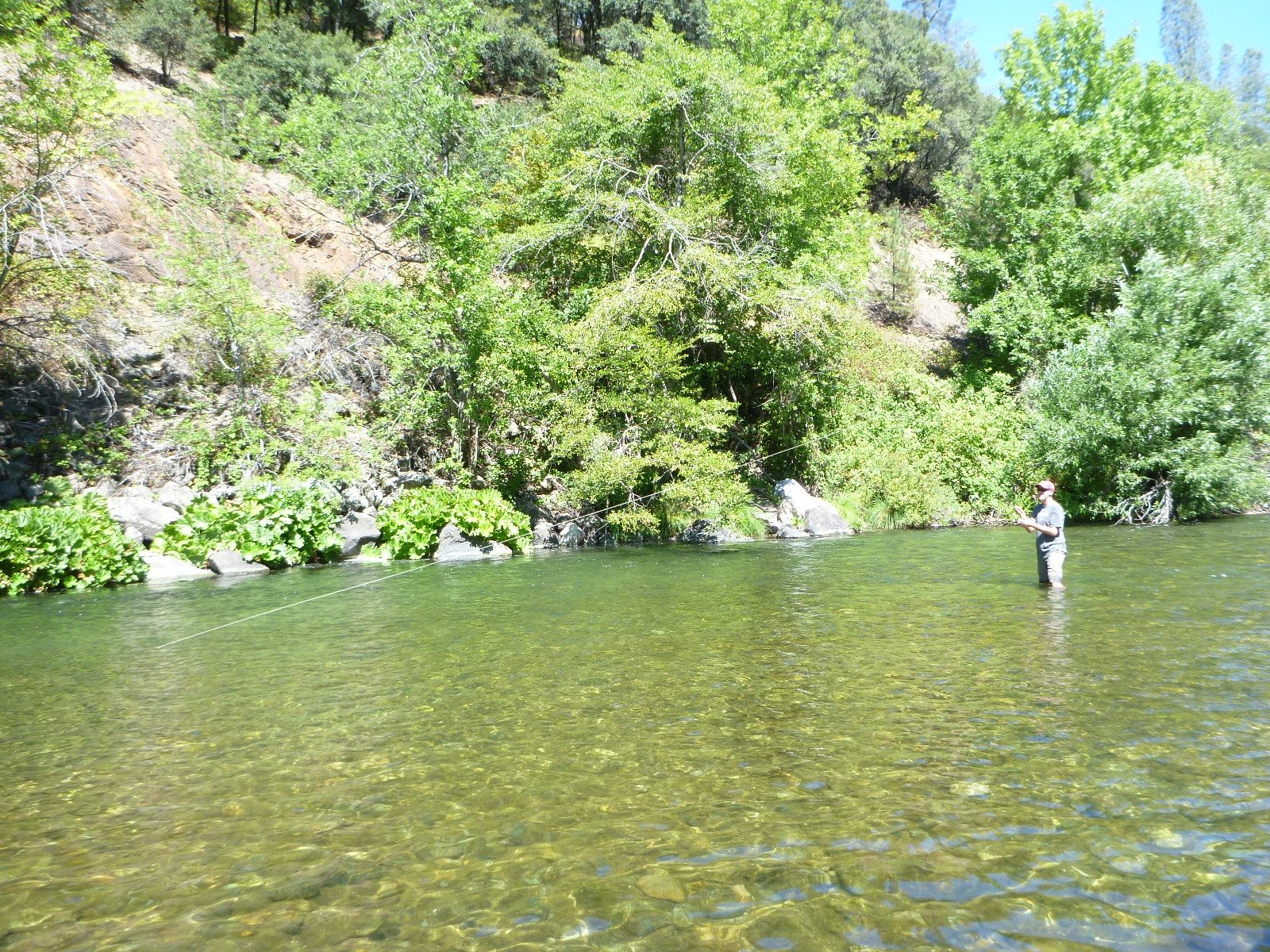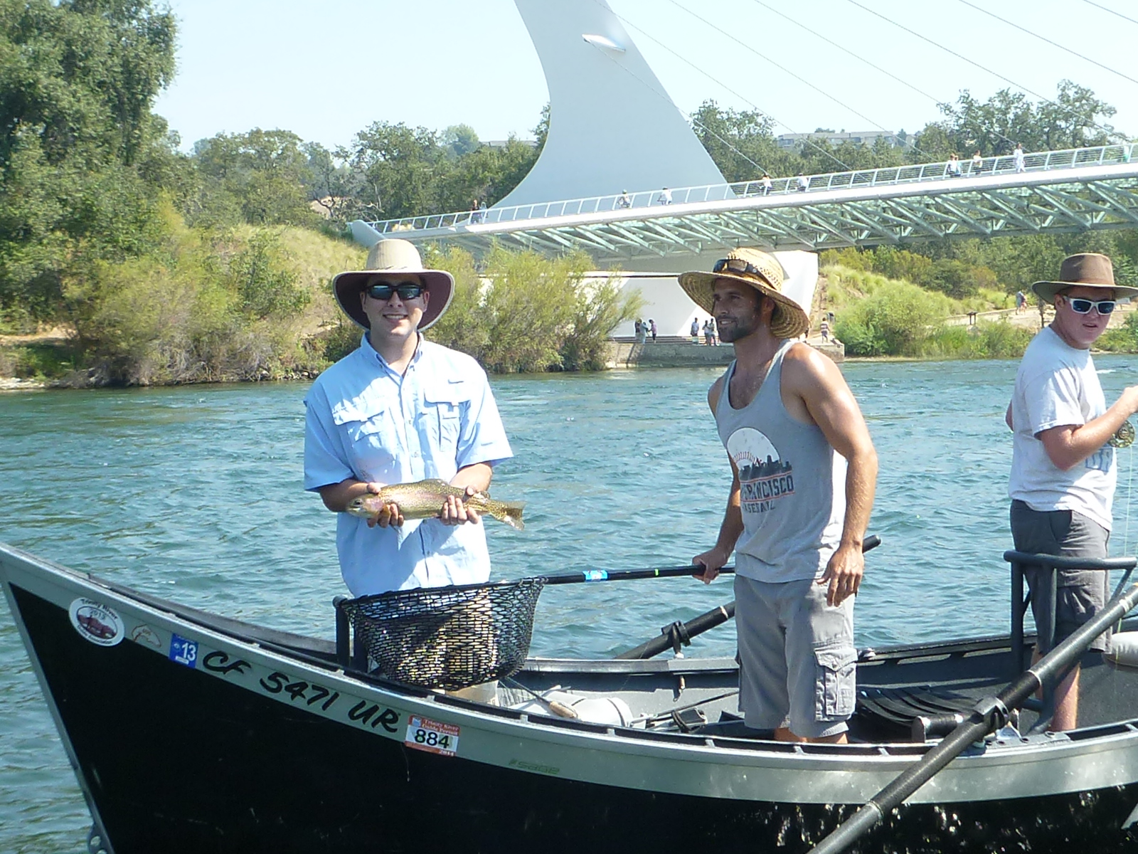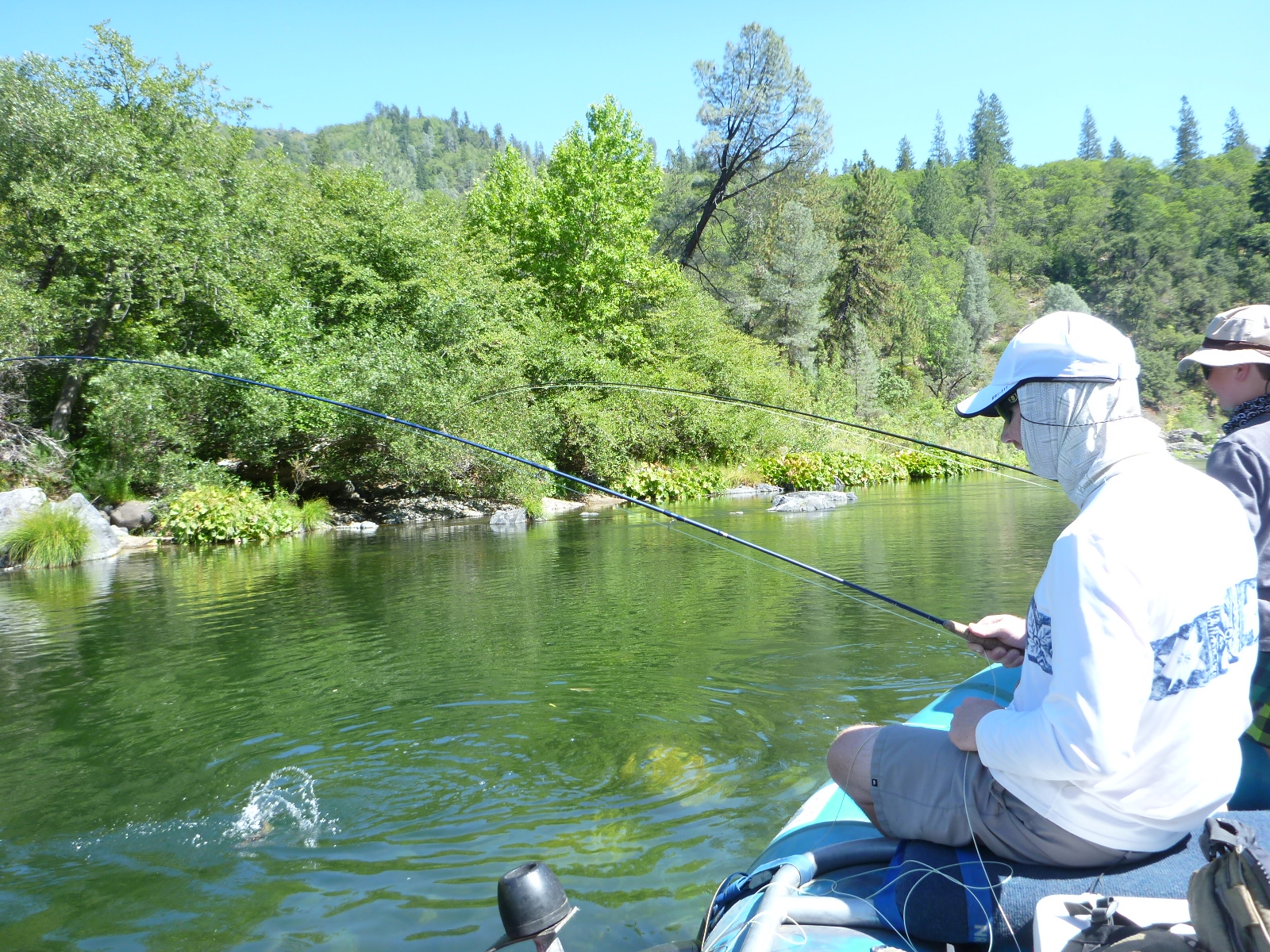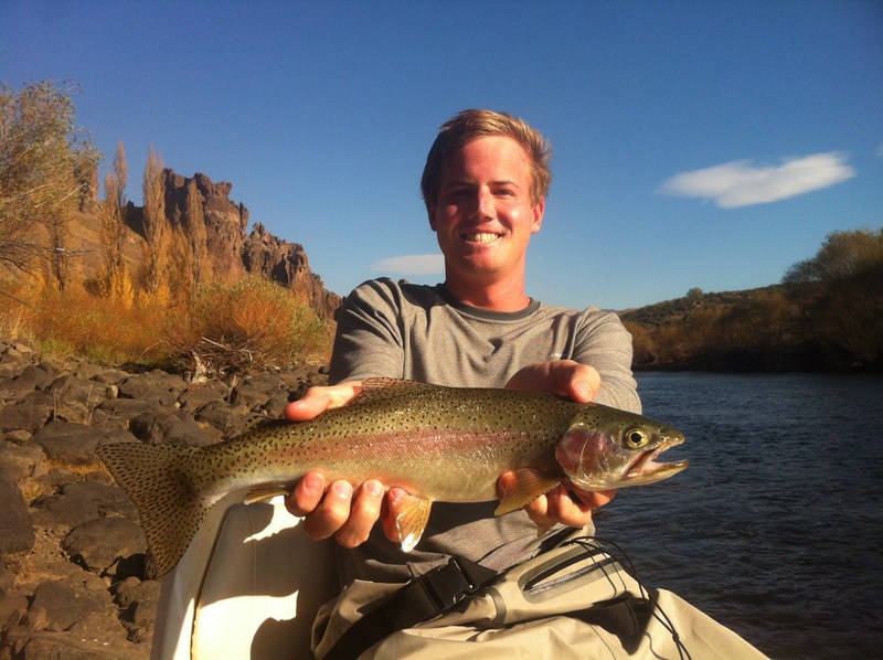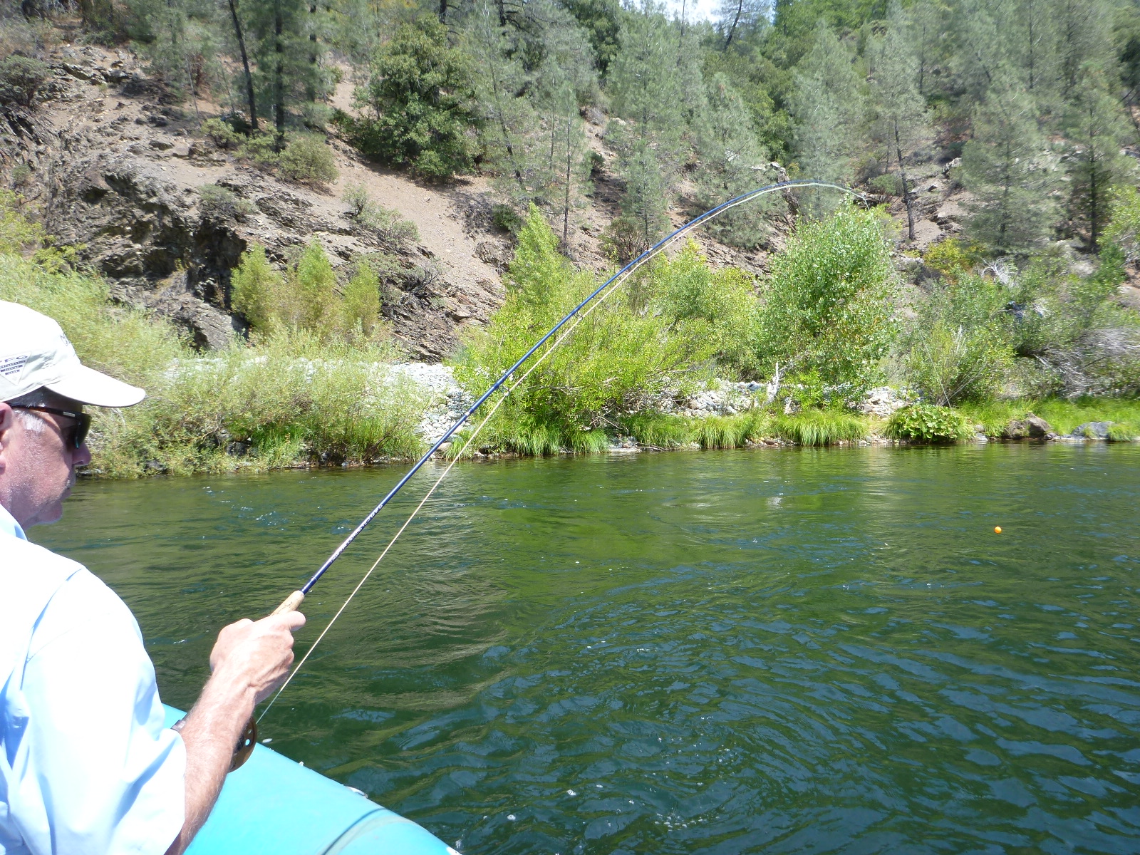 Here’s Geoffrey Snow with a nice hook-up and landed trout on the Lower Sacramento River. It’s just starting to heat up now, call us for a date in late September.