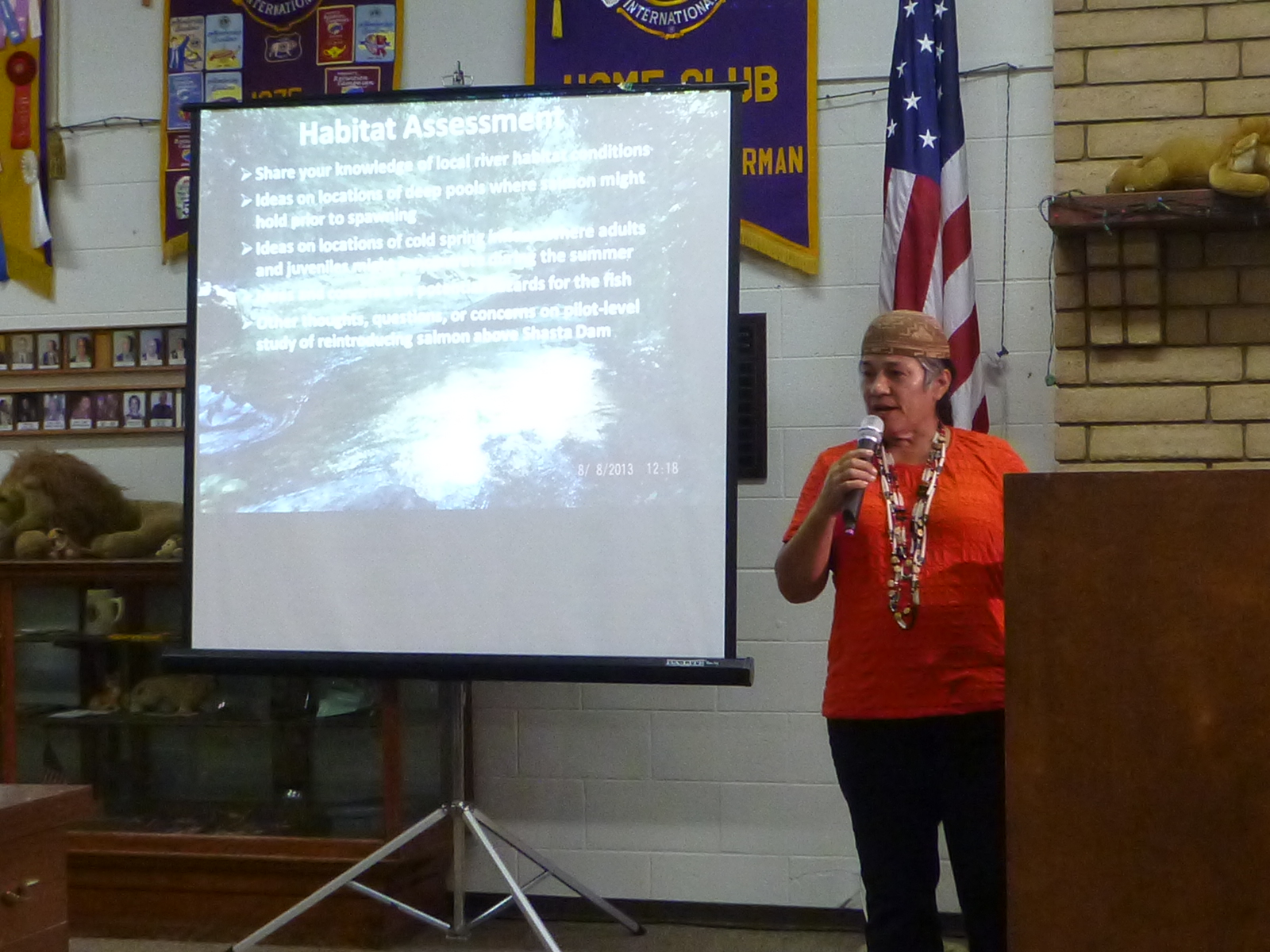 Caleen Sisk talked about how the Wintu’ tribe has never been the same after the Shasta Keswick Dam was put in place in 1945. She explained that the Wintu’ think that salmon that were introduced to New Zealand from the McCloud river from 1873 to 1900 would be the best salmon to re-introduce since they have not been exposed to our modern day local diseases and they think the salmon would naturally reintroduce themselves into the 4 drainages of Shasta Lake. The Sacramento, McCloud, Squaw Creek and Pit River.