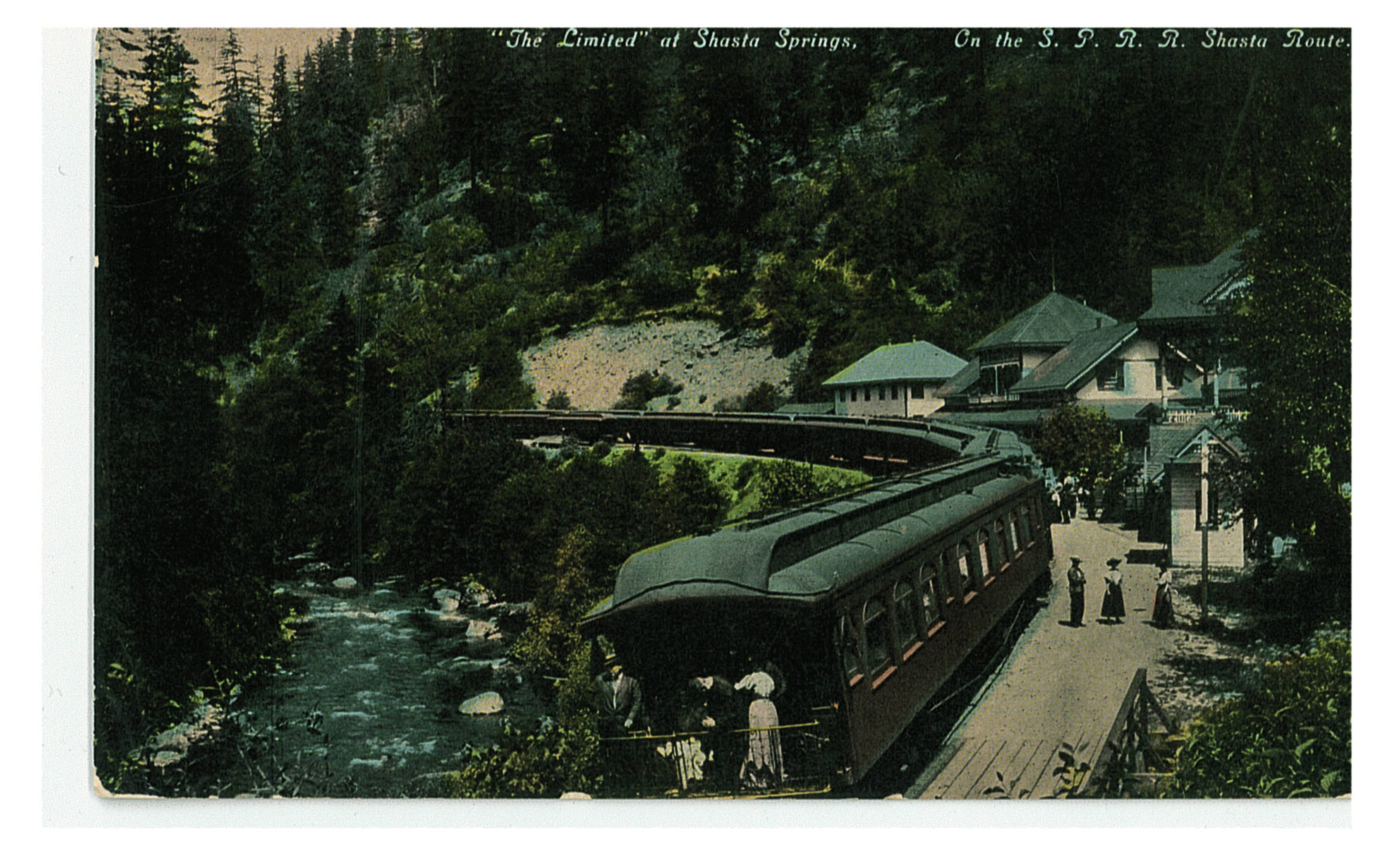 Now here is the Shasta Soda Springs Resort from about 1905, you can see the Upper Sacramento River running on the left hand side. I have this as part of a post card collection. You can see its winter flows aren’t too much more than we receive now, probably a couple hundred steelhead, salmon and trout in the vicinity. Makes my mouth water… (Flows looks like about 1300 to 1800 CFS.)