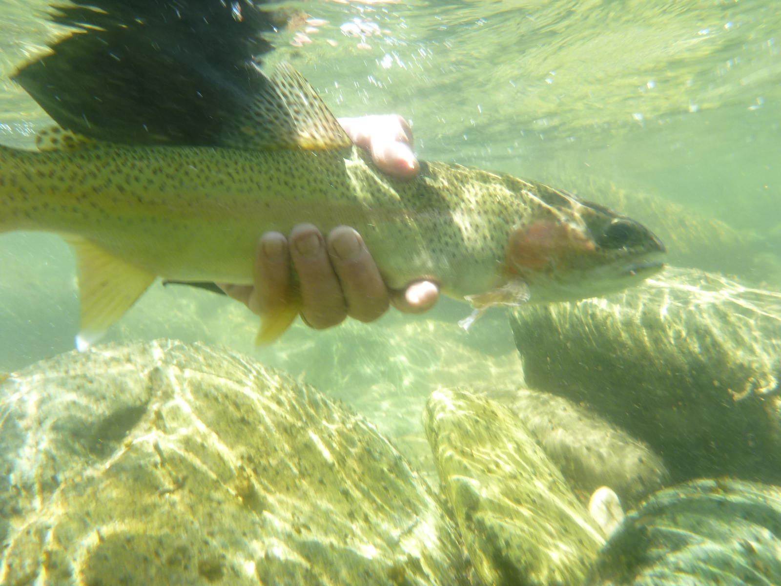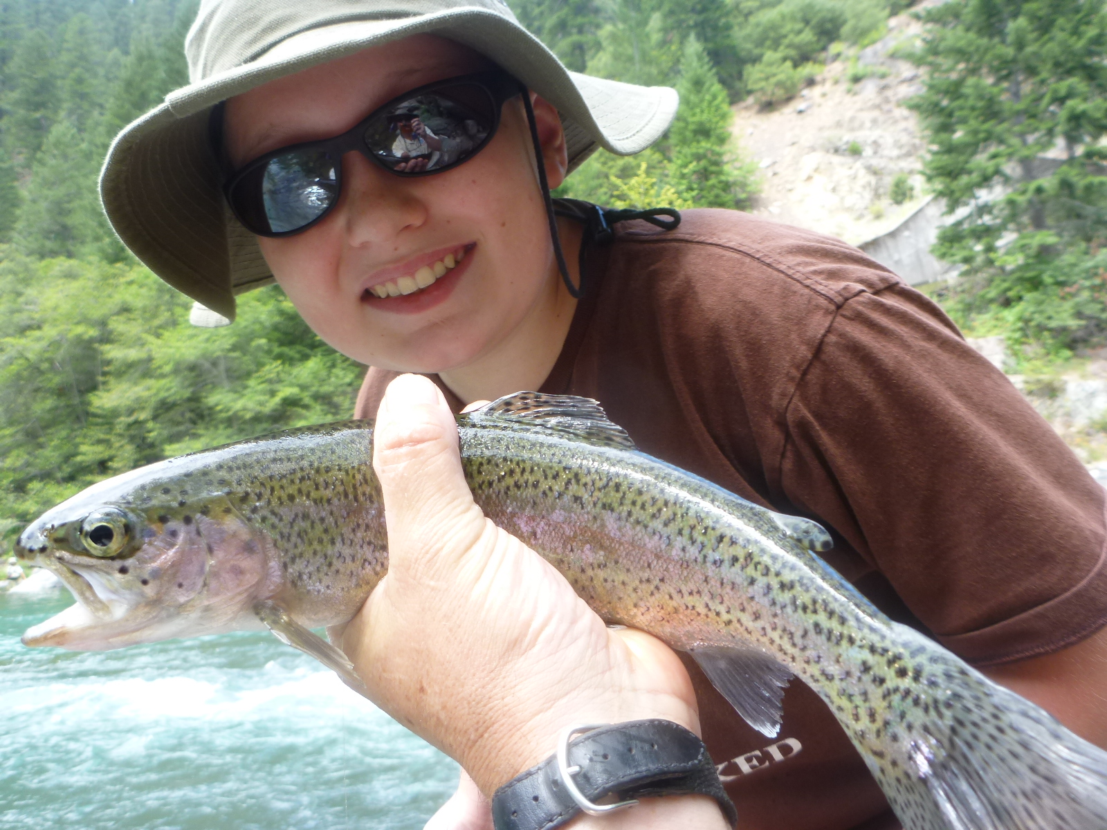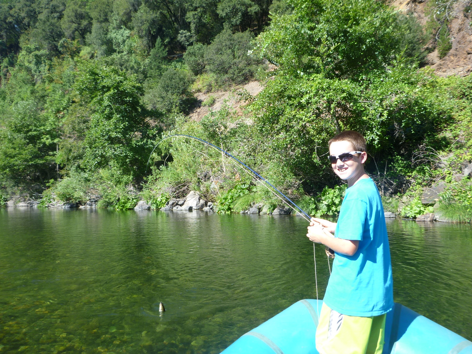 Wyatt & Casey enjoyed their day out on the Upper Sac fly fishing for trout & bass. Casey with a nice trout on the line.