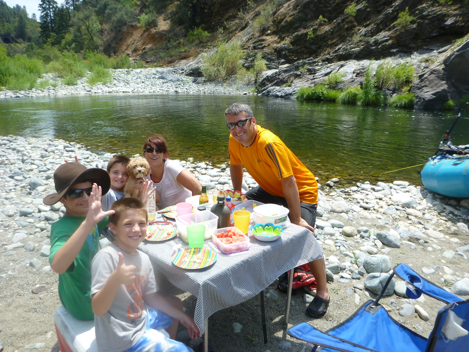 George Paris and his son Ethan came up to see me and float the Upper Sac down to Shasta Lake for a second year. In this family when dad wants a bite of their banana split sundae, the kids often say “Dad, don’t take a George Bite Please!”