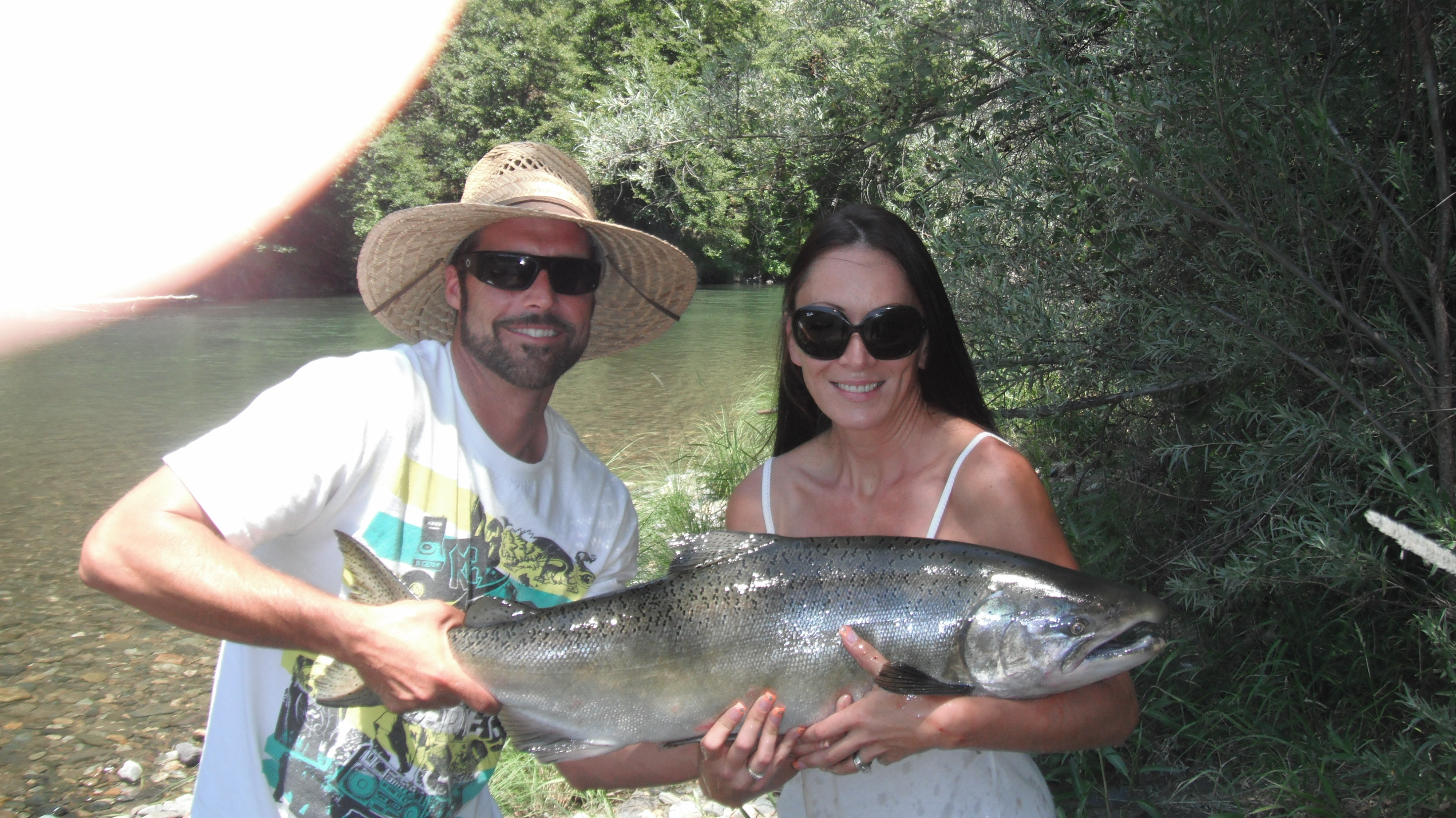 Over on the Trinity river, Kalani & Forrest hooked and landed this wonderful Chinook this past week and are guiding clients right now. Give us a call for a salmon or steelhead trip on the Trinity river while dates are still open.