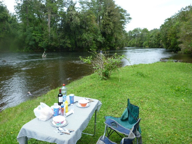 Our stream-side lunches are always awesome, perfect with a little Chilean Carmenere wine.